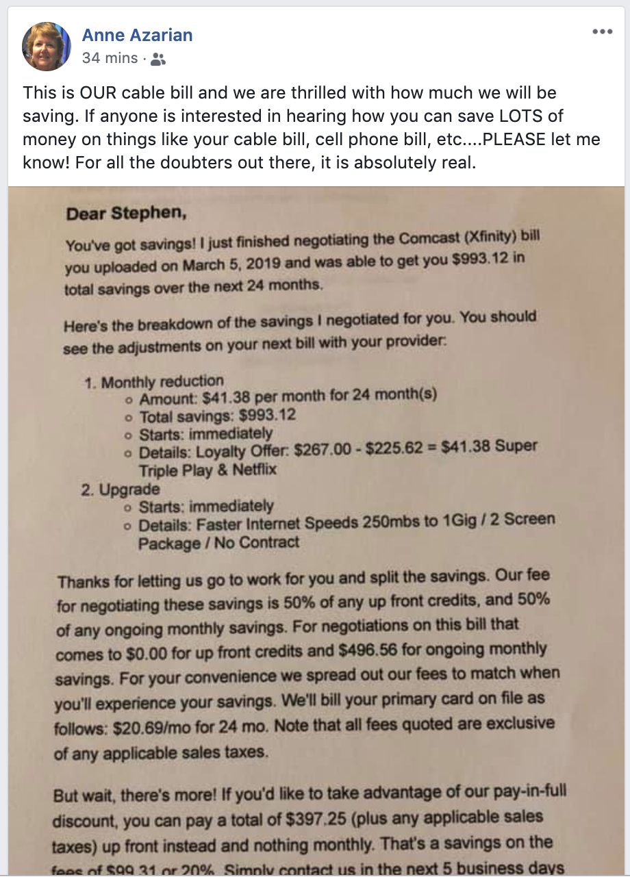 I saved a total of $1,226 on our Comcast, Verizon and SiriusXM bills for 1-2 years!